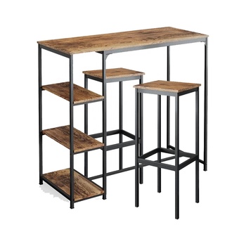 Ensemble Table à manger Table de Bar avec 2 tabourets de Pub 3 pièces comptoir hauteur Table de Pub chaises ensemble 3 niveaux étagères de rangement en bois Vintage